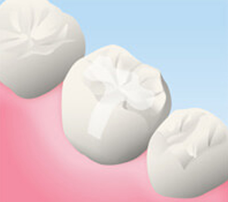 そのため、むし歯の治療で詰め物や被せ物をする場合は、ジルコニアやセラミックなどの素材を使用できます。セラミックは天然歯のような色調で透明感があり、汚れ(プラーク)が付きにくい上、ほとんど変色せず長期的に使用できます。