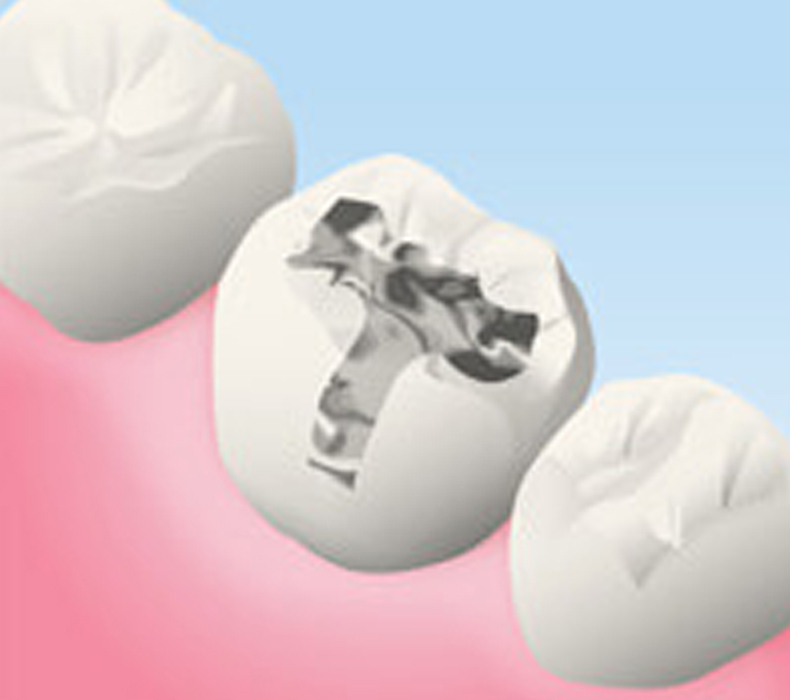 | 治療の流れ | 銀の詰め物を外し、むし歯治療後に詰め物を歯に接着します。 |