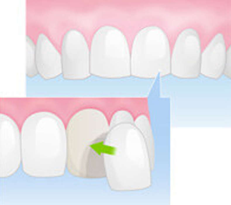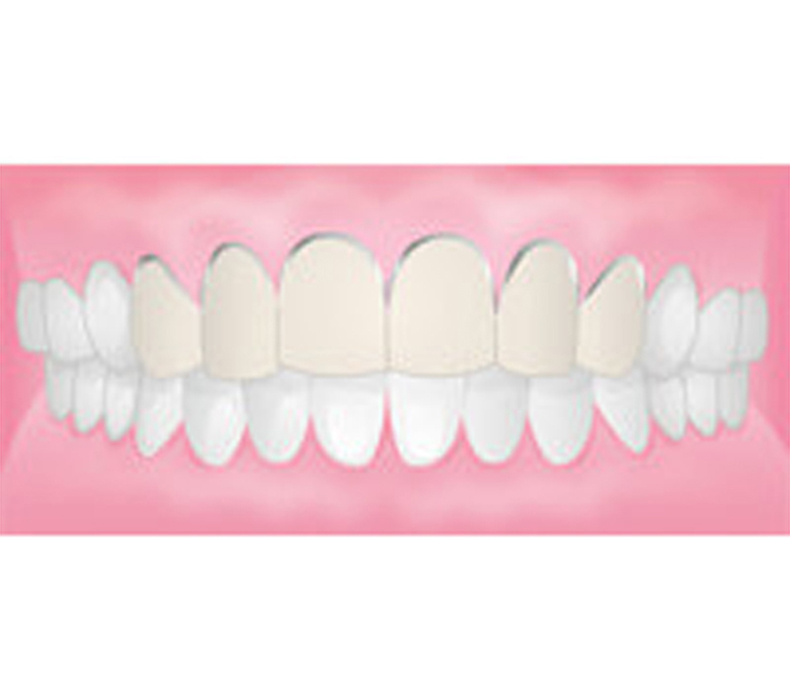 | 治療の流れ | 歯を薄く削り、患者さまの歯の色や形に合わせて製作したラミネートべニアを接着します。 |