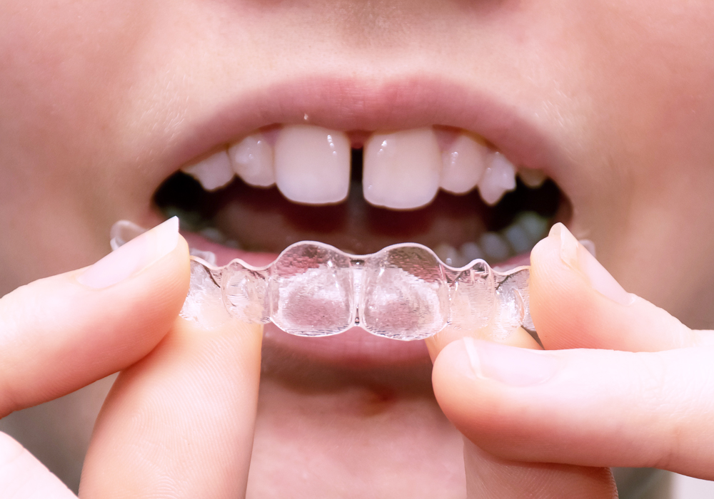 透明でめだちにくいマウスピース型矯正装置です。取り外し可能で、食事や歯磨きも普段通り行えます。「インビザライン」は、子どもの成長に合わせて歯並びとあごの発育をコントロールし、正しいかみ合わせへと導きます。
