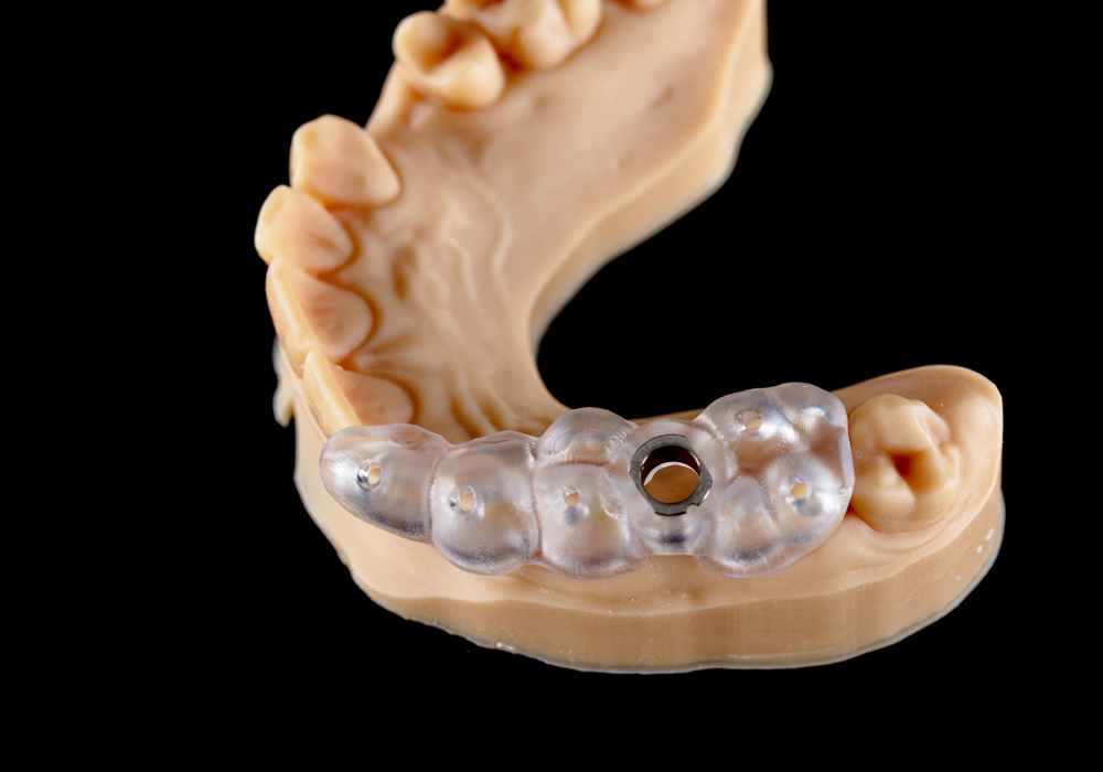このシステムでは、顎の骨に穴を開けたりインプラントを埋入したりする際に、ガイド(目印)となる外科用マウスピースを使用します。これにより、インプラントの埋入位置や角度がズレないため、より精度の高い治療ができるようになりました。